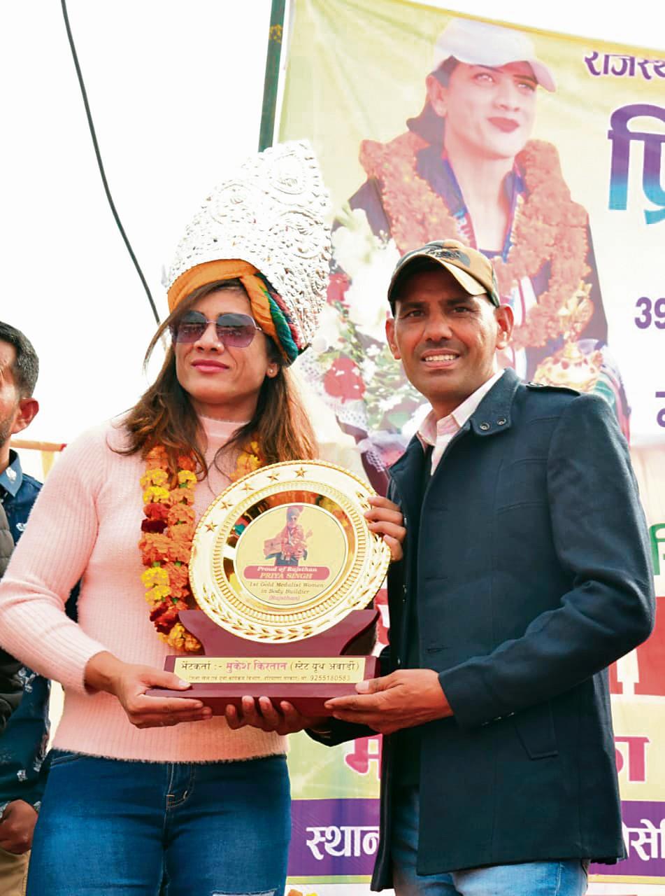 39वीं अंतरराष्ट्रीय बॉडी बिल्डिंग प्रतियोगिता में जीता गोल्ड मेडल खेलपथ संवाद हिसार। थाईलैंड के पटाया में आयोजित 39वीं अंतरराष्ट्रीय बॉडी बिल्डिंग प्रतियोगिता में राजस्थान की बेटी व राजस्थान की पहली महिला बॉडी बिल्डर प्रिया सिंह ने गोल्ड मेडल प्राप्त किया। सोमवार को प्रिया सिंह के सम्मान में समारोह आयोजित कर उसे सम्मानित किया गया। समाजसेवी एवं स्टेट यूथ अवार्डी मुकेश किरतान ने बॉडी बिल्डर प्रिया सिंह को राजस्थान का गौरव .......