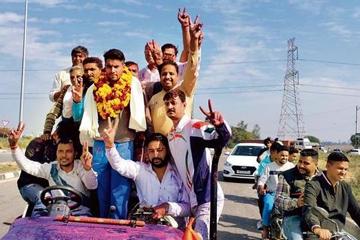 खुली जीप में ढोल-नगाड़ों की धुन के साथ घुमाया जूनियर नेशनल कबड्डी टीम में हरियाणा टीम बनी उप-विजेता खेलपथ संवाद कलायत। हाल ही उत्तराखंड के हरिद्वार में आयोजित जूनियर नेशनल कबड्डी चैम्पियनशिप में हरियाणा को दूसरा स्थान दिलाने वाले टीम के कप्तान उमेश पंवार का कलायत पहुंचने पर विभिन्न राजनीतिक, सामाजिक तथा धार्मिक संगठनों के साथ बिरादरी के सैकड़ों युवाओं द्वारा जोरदार स्वागत किया गया। संगम होटल से युवाओं का काफिला ओपन जीप मे.......