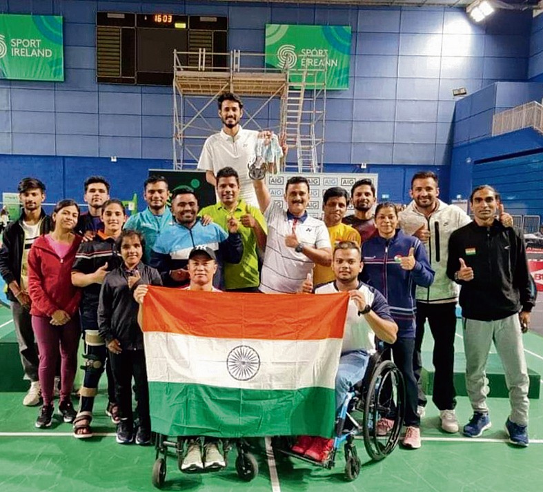 पैरा बैडमिंटन इंटरनेशनल-2022 टूर्नामेंट खेलपथ संवाद सोनीपत। आयरलैंड में पैरा बैडमिंटन इंटरनेशनल-2022 टूर्नामेंट में देश के खिलाड़ियों ने शानदार प्रदर्शन किया और 2 स्वर्ण पदक सहित 11 मेडल जीते। सोनीपत निवासी हार्दिक ने पुरुष युगल वर्ग में चिराग के साथ मिलकर देश की झोली में सिल्वर मेडल डाला। बुधवार देर रात लौटे सोनीपत की सिक्का कॉलोनी निवासी पैरा खिलाड़ी हार्दिक ने बताया कि नित्याश्री और मनदीप कौर ने स्वर्ण पदक जीते। प्रमोद भगत,.......