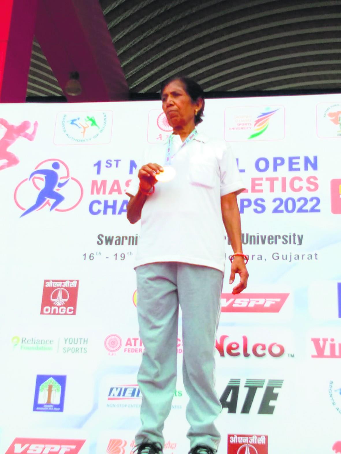 300 मीटर हर्डल रेस में स्वर्ण पदक जीता खेलपथ संवाद चरखी दादरी। शिक्षा विभाग से सेवानिवृत्त अध्यापिका शकुंतला श्योराण में 67 वर्ष की आयु में भी युवाओं जैसा जोश है। शकुंतला ने गुजरात के वड़ोदरा में आयोजित फर्स्ट नेशनल ओपन मास्टर एथलेटिक्स चैम्पिनयनशिप में एक स्वर्ण व एक रजत पदक जीतकर एक बार फिर दादरी जिले के नाम को पूरे भारत में रोशन किया है। शंकुतला श्योराण ने प्रतियोगिता में हरियाणा टीम का प्रतिनिधित्व करते हुए 300 मीटर हर.......