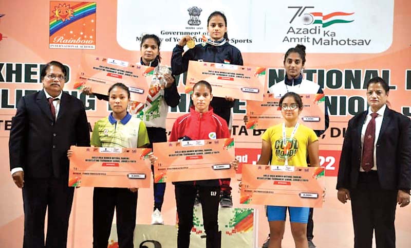खेलो इंडिया महिला भारोत्तोलन लीग खेलपथ संवाद नगरोटा बागवान (हिमाचल प्रदेश)। ओलम्पिक पदक विजेता सेखोम मीराबाई चानू ने पहली खेलो इंडिया महिला भारोत्तोलन लीग टूर्नामेंट में स्वर्ण पदक जीता लेकिन स्नैच में अपना राष्ट्रीय रिकॉर्ड नहीं बना सकीं। टोक्यो ओलम्पिक की रजत पदक विजेता चानू ने 191 किलो (86 और 105 किलो) वजन उठाया। ज्ञानेश्वरी देवी (170 किलो) दूसरे और एशियाई भारोत्तोलन चैम्पियनशिप में 45 किलो की पूर्व स्वर्ण पदक विजेता .......