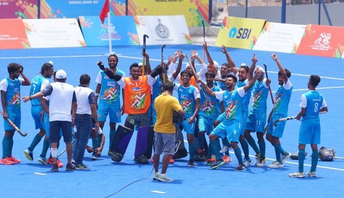 रुशिल खोसला टेनिस के फाइनल में पहुंचे जूडो में दिल्ली ने जीते तीन स्वर्ण खेलपथ संवाद चण्डीगढ़। पंजाब के लड़कों ने जूनियर राष्ट्रीय हॉकी चैंपियन उत्तर प्रदेश को 3-1 से हराकर खेलो इंडिया यूथ गेम्स में स्वर्ण पदक जीत लिया। वहीं हरियाणा ने ओडिशा को 4-1 से हराकर महिला वर्ग में स्वर्ण पदक जीता। इन खेलों में हरियाणा का दबदबा जारी है। उसने शुक्रवार को अपने पदकों की संख्या 36 स्वर्ण पदक के साथ 100 के पार पहुंचा दी। यूपी के रुशिल खोसला .......
