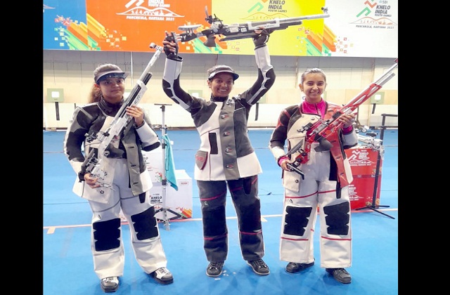 मेजबान शुटरों ने सात पदकों पर किया कब्जा खेलपथ संवाद पंचकूला। खेलो इंडिया यूथ गेम्स-2021 के अंतर्गत दिल्ली में चल रही शूटिंग प्रतियोगिताओं में हरियाणा ओवरऑल चैम्पियन बनकर उभरा है। गुरुवार को लड़कियों के 10 मीटर एयर राइफल के फाइनल मुकाबले में हरियाणा की रमिता ने स्वर्ण पदक अपने नाम किया है। जबकि हर्षिता ने कांस्य पदक जीता है। रजत पदक राजस्थान की देवांशी के खाते में गया है। गुरुवार को जीते गए पदक के साथ शूटिंग प्रतियोगिताओ.......
