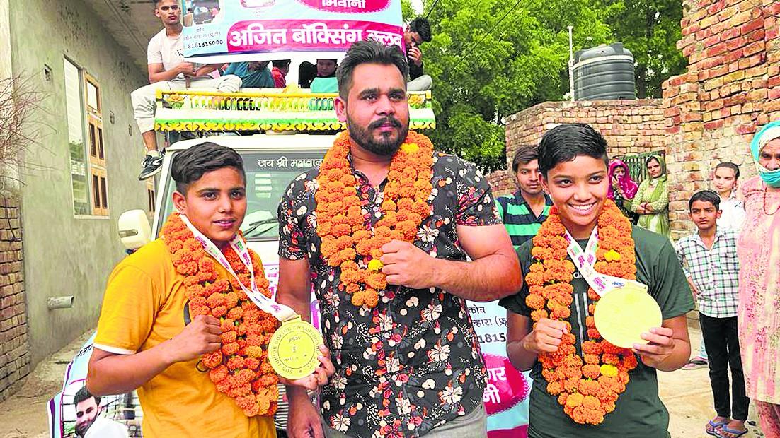 कर्नाटक में जीते गोल्ड मेडल, विजय जुलूस निकाला खेलपथ संवाद भिवानी। भिवानी की दो बॉक्सर बेटियों ने एक बार फिर गोल्ड मेडल जीतकर देश में नाम रोशन किया और साबित किया है कि हमारी बेटियां बेटों से कम नहीं। विजेता बेटियों की इस जीत पर परिजनों व खेलप्रेमियों ने सिर आंखों पर बैठ कर विजय जुलूस निकाला। मिनी क्यूबा कहे जाने वाले भिवानी की दो बेटियों ने एक बार फिर जिले का नाम पूरे देश में रोशन किया है। आरज़ू व जोनी ने 20 से 26 मई तक .......