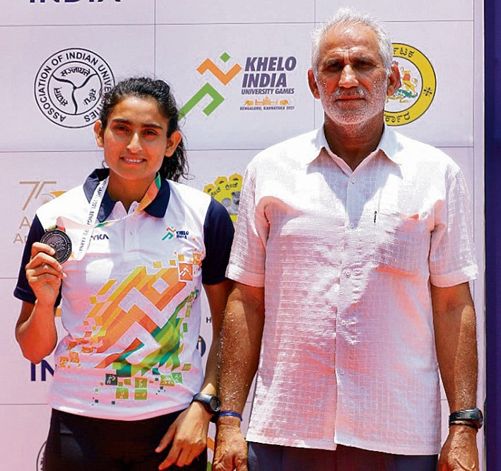 खेलपथ संवाद भिवानी। द्वितीय खेलो इंडिया यूनिवर्सिटी प्रतियोगिता 2022 का आयोजन 24 अप्रैल से 3 मई तक कर्नाटक के बेंगलुरू में करवाया गया। प्रतियोगिता में बाबा भैरूनाथ स्पोर्ट क्लब चौधरी खेमचंद स्टेडियम बुसान की एथलीट पूजा शर्मा ने चौधरी बंसीलाल विश्वविद्यालय की तरफ से खेलते हुए हैप्टाथलॉन महिला वर्ग में 4728 अंक लेकर रजत पदक जीता। पूर्व डी.एस.ओ. कोच जयसिंह कालीरामन ने बताया कि आदर्श कॉलेज की द्वितीय वर्ष की जूनियर एथलीट का राष्ट्र.......