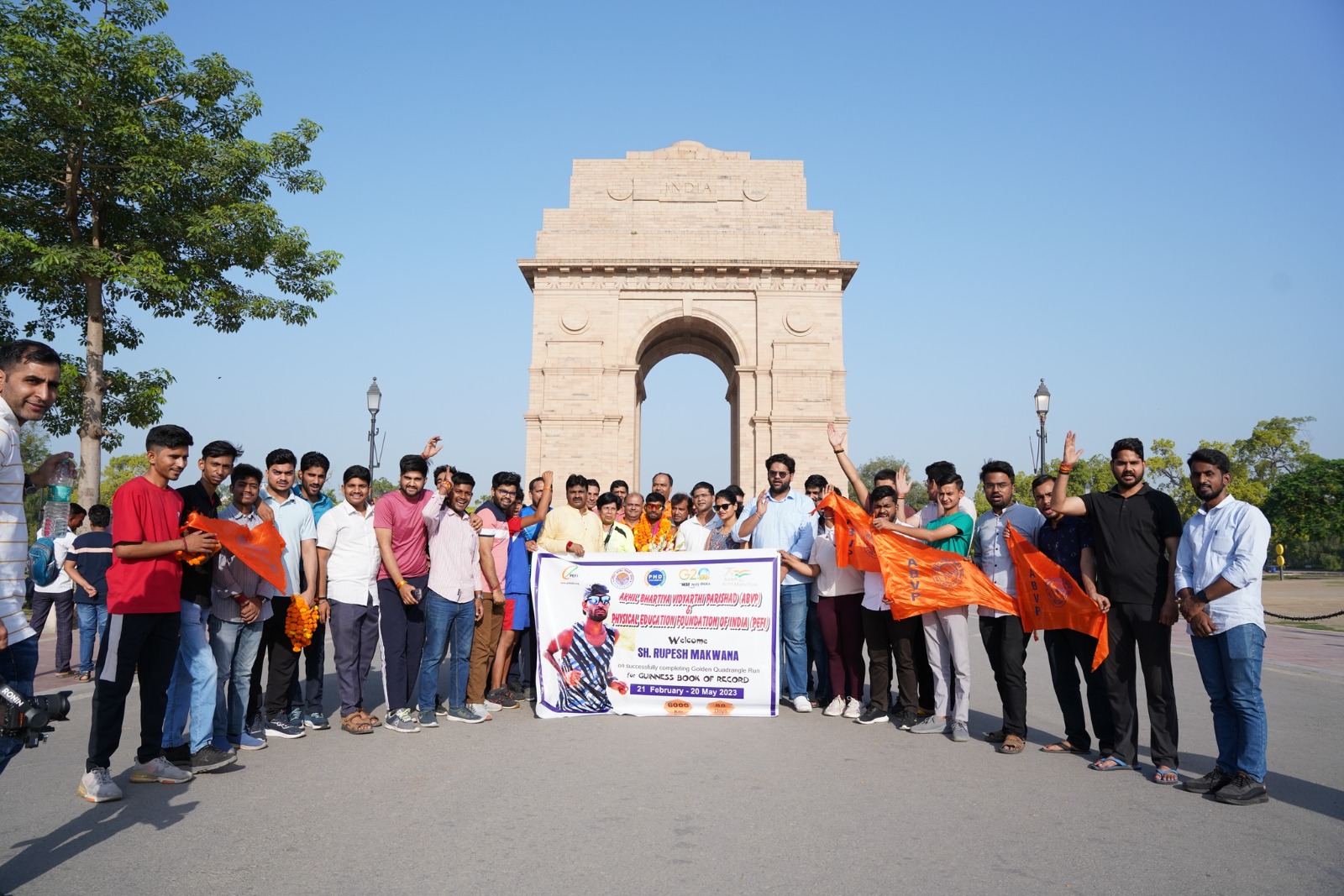 सेव यूथ–सेव नेशन–सेव अर्थ के नारे के साथ 6000 किलोमीटर की दौड़ की पूरी खेलपथ संवाद दिल्ली। अखिल भारतीय विद्यार्थी परिषद की खेल गतिविधि के तत्वावधान में पेफी के सहयोग से स्वर्णिम चतुर्भुज की 6000 किलोमीटर की दौड़ सेव यूथ–सेव नेशन–सेव अर्थ के नारे के साथ अल्ट्रा रनर रूपेश मकवाना ने इंडिया गेट पहुँच कर यह ऐतिहासिक दौड़ 88 दिनों में पूरी कर गिनीज बुक ऑफ़ वर्ल्ड रिकॉर्ड के लिए अपना दावा दर्ज किया। 21.......