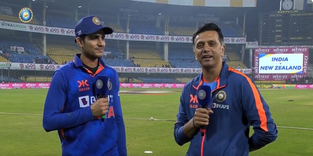 भारतीय कोच राहुल द्रविड़ ने शुभमन गिल का इंटरव्यू लिया खेलपथ संवाद इंदौर। न्यूजीलैंड के खिलाफ वनडे सीरीज के आखिरी मैच में शुभमन गिल ने 112 रन की शानदार पारी खेली। उन्होंने कप्तान रोहित शर्मा के साथ 212 रन की ओपनिंग साझेदारी की और टीम इंडिया को शानदार शुरुआत दिलाई। पिछली चार वनडे पारियों में यह गिल का तीसरा शतक था। इससे पहले उन्होंने श्रीलंका के खिलाफ शतक लगाया था और न्यूजीलैंड के खिलाफ सीरीज के पहले मैच में 208 रन बनाए थे। .......