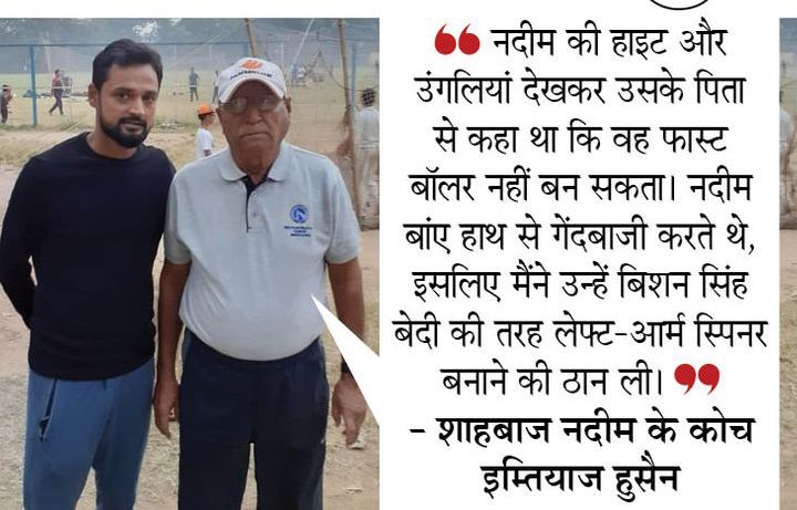कोच ने उन्हें बिशन सिंह बेदी की तरह स्पिनर बनाया पिता को भी विश्वास नहीं था बेटा क्रिकेटर बनेगा चेन्नई। टीम इंडिया को इंग्लैंड के खिलाफ चेन्नई टेस्ट में 227 रन से शिकस्त झेलनी पड़ी। भारतीय टीम 4 टेस्ट की सीरीज में 0-1 से पिछड़ गई। इस मैच के लिए भारत की प्लेइंग इलेवन में अक्षर पटेल और कुलदीप यादव को नजरअंदाज करते हुए शाहबाज नदीम को जगह दी गई थी। यह लेफ्ट-ऑर्म स्पिनर नदीम के करियर का दूसरा टेस्ट था, जिसमें उन्होंने 4 विकेट लिए। .......